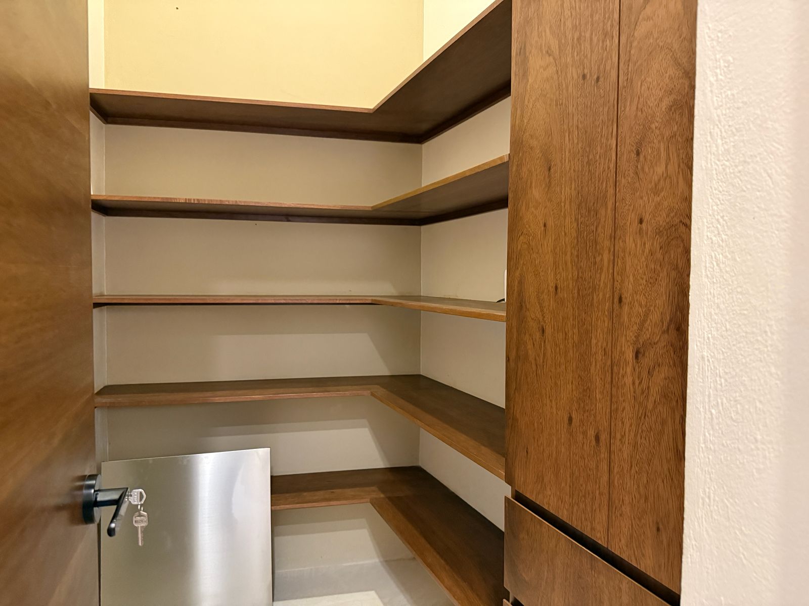 La impresionante cocina con espacio para comer está equipada con, lavavajillas, gabinetes de madera y un sistema de purificación de agua por ósmosis inversa.