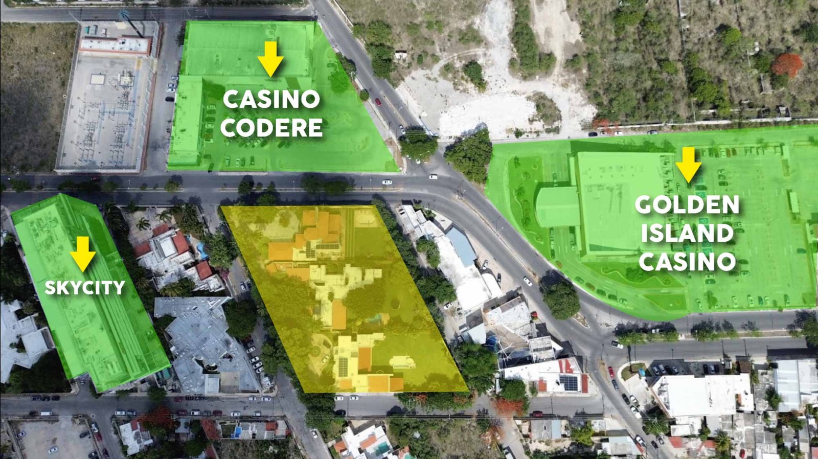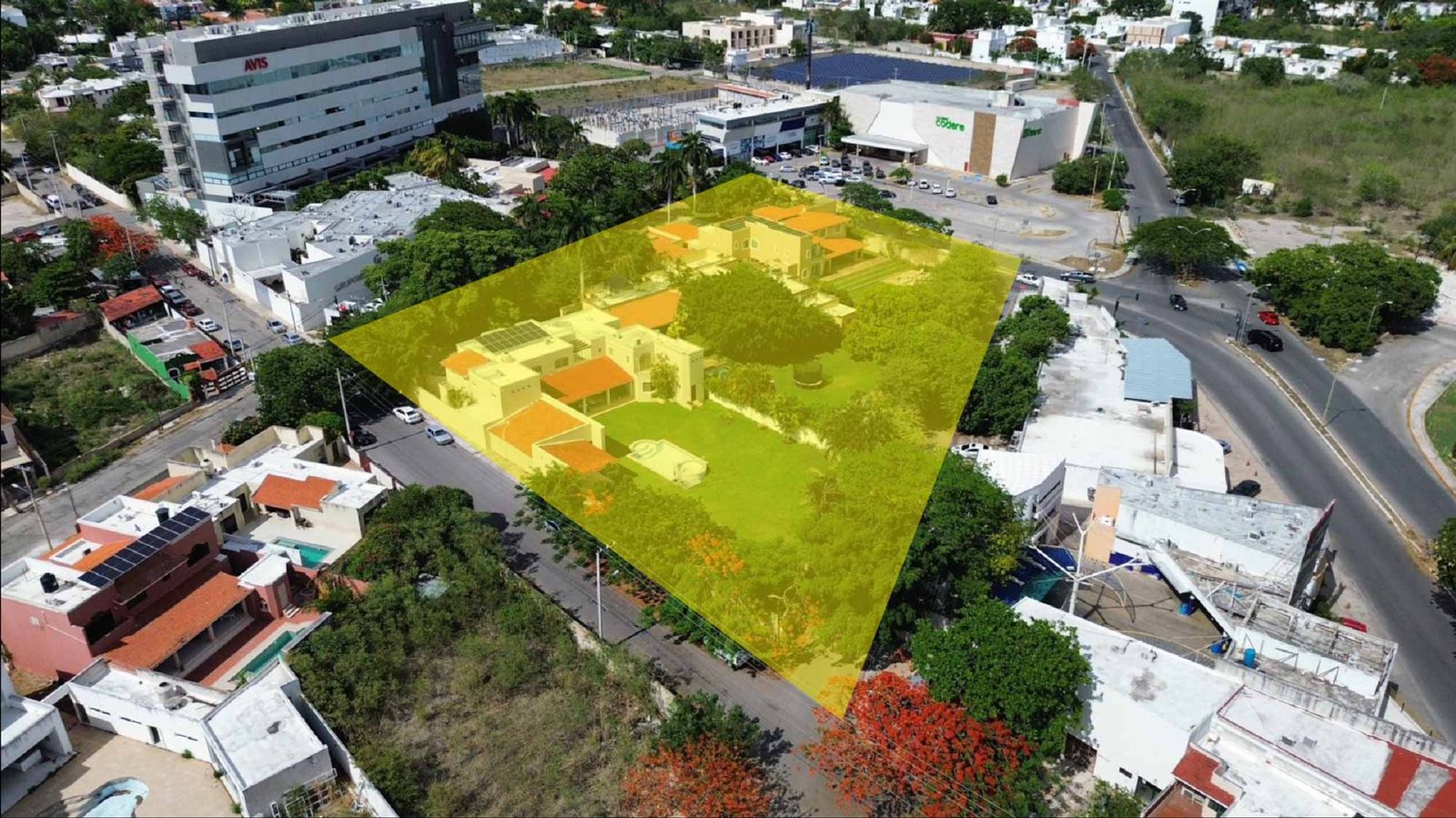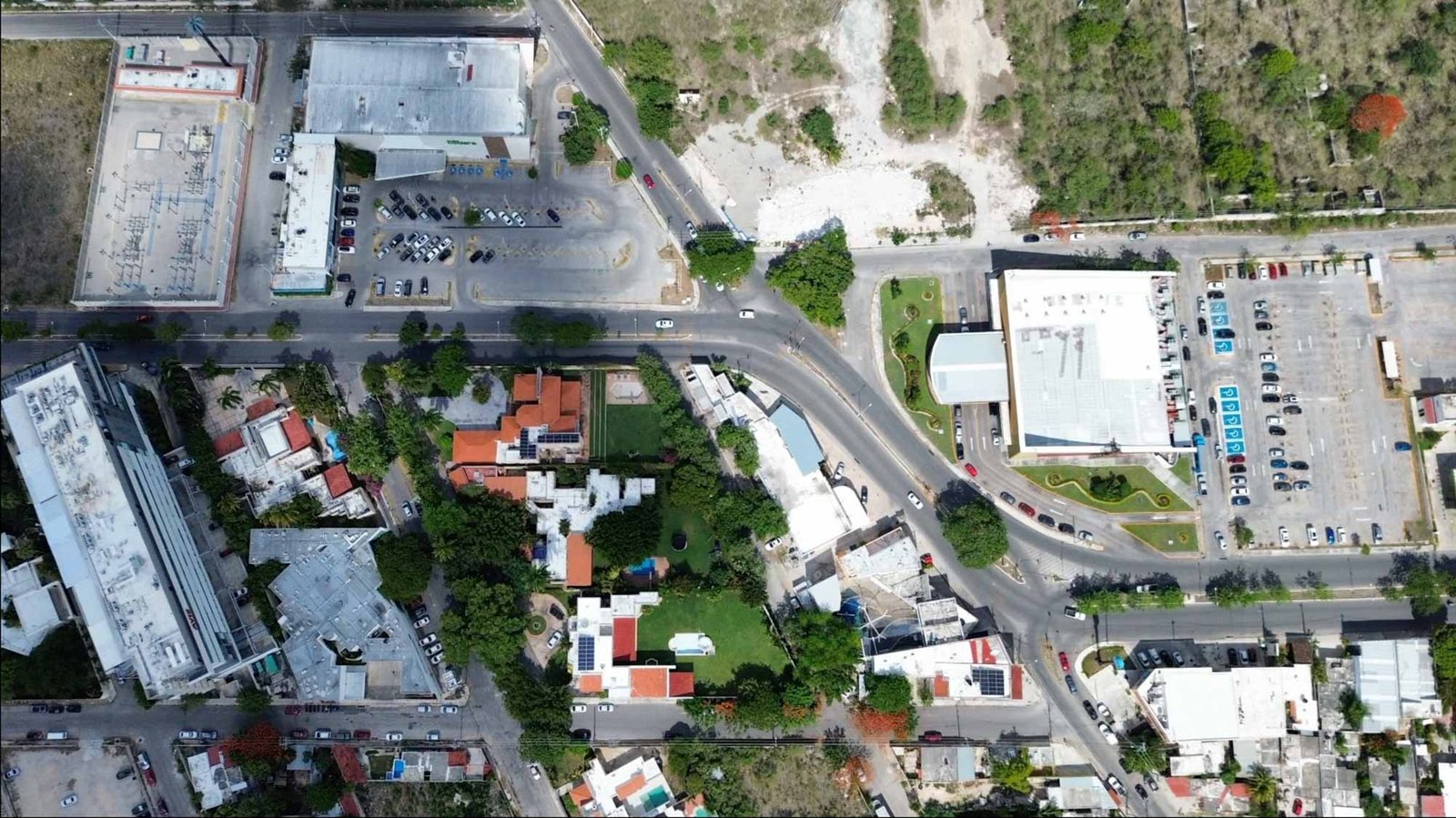 La superficie total del terreno cuenta con construcciones de residencias que pudieran adaptarse perfectamente para uso de oficinas o corporativos ,tienda departamental, gasolinera, supermercado o edificio.