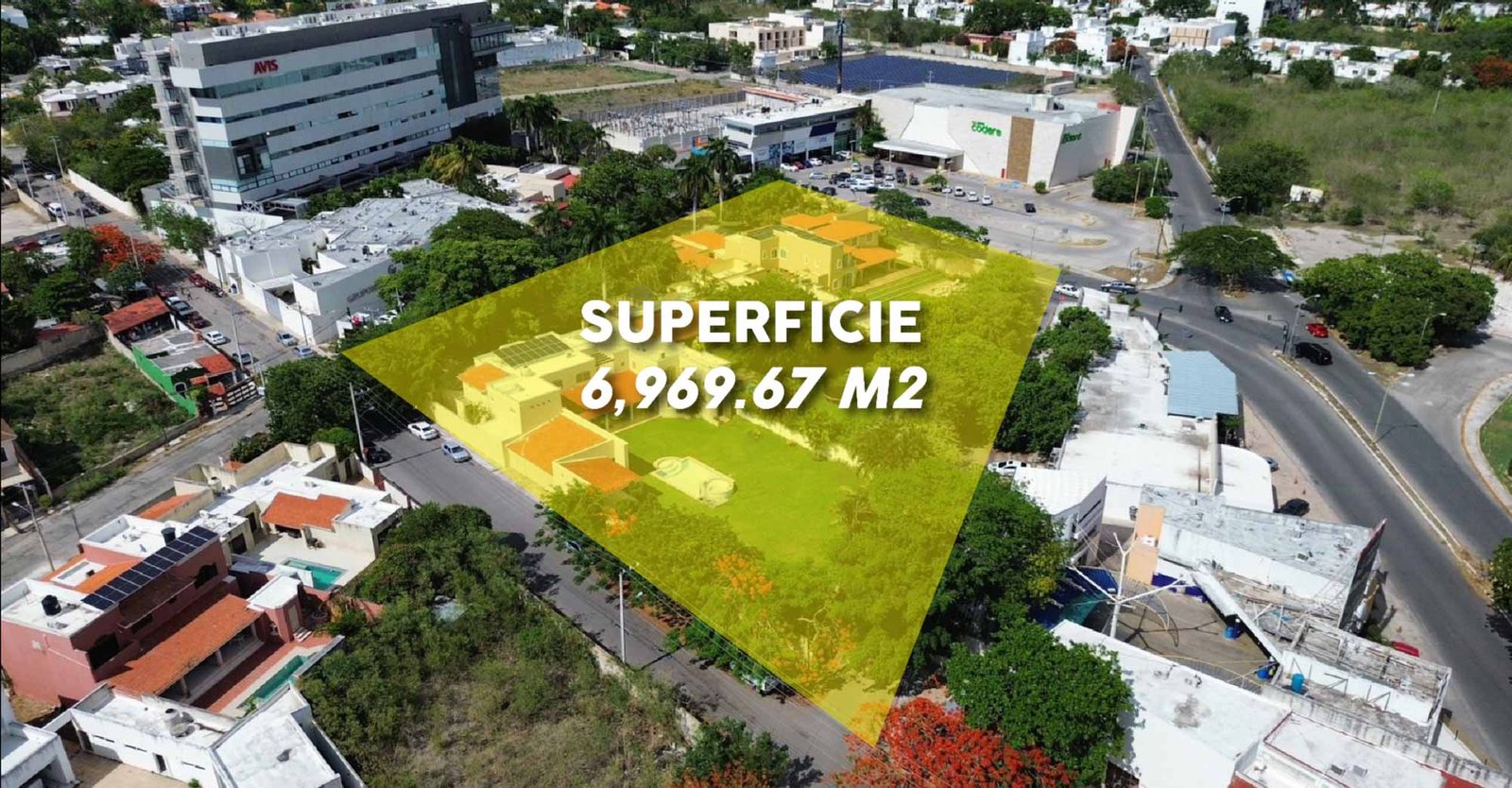 La superficie total en venta es de 6,969.67 m2 constituida en cuatro lotes.