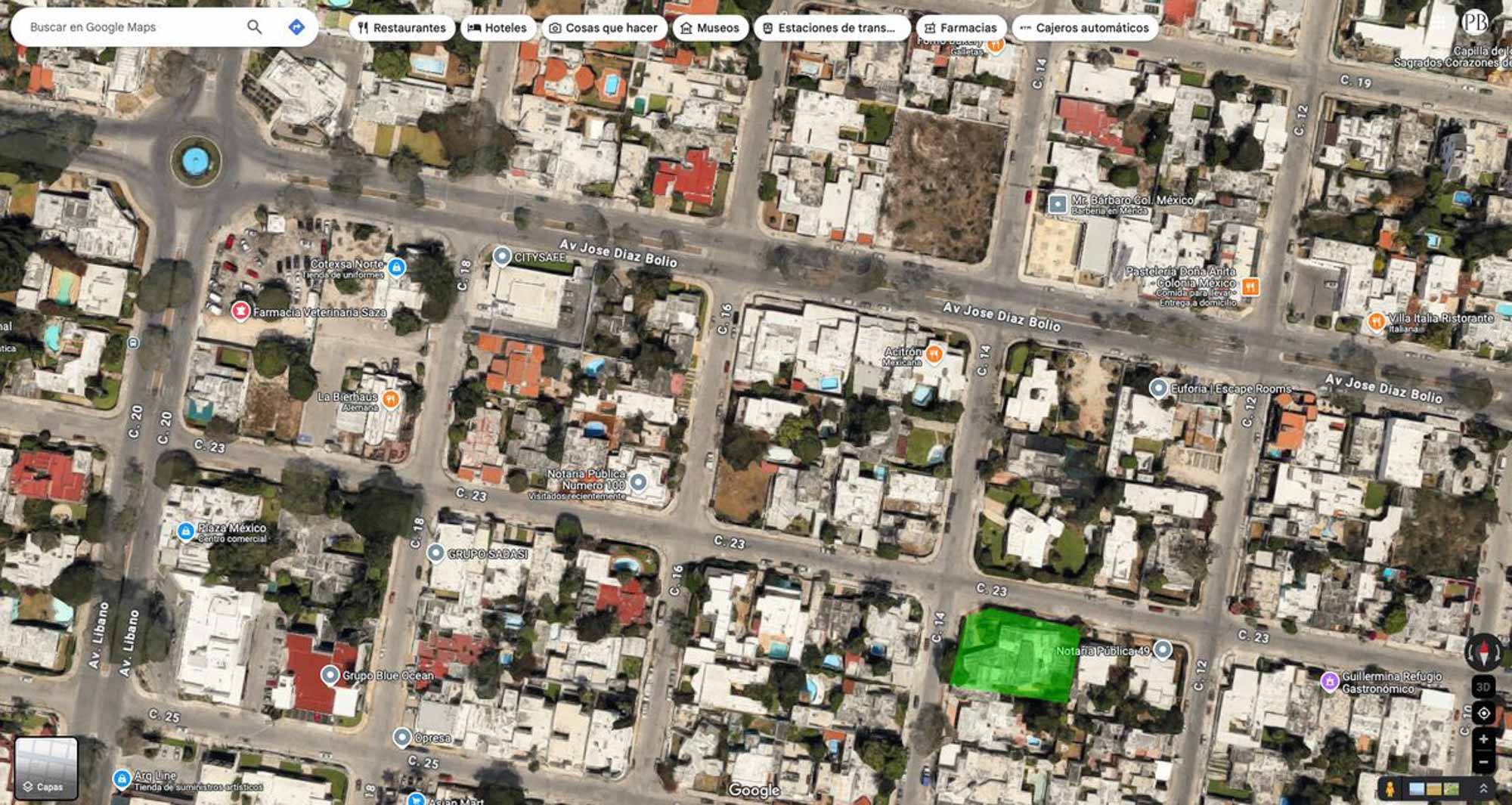 A tan sólo una cuadra de la Avenida José Díaz Bolio y la Avenida Líbano ( también conocida como calle 20).