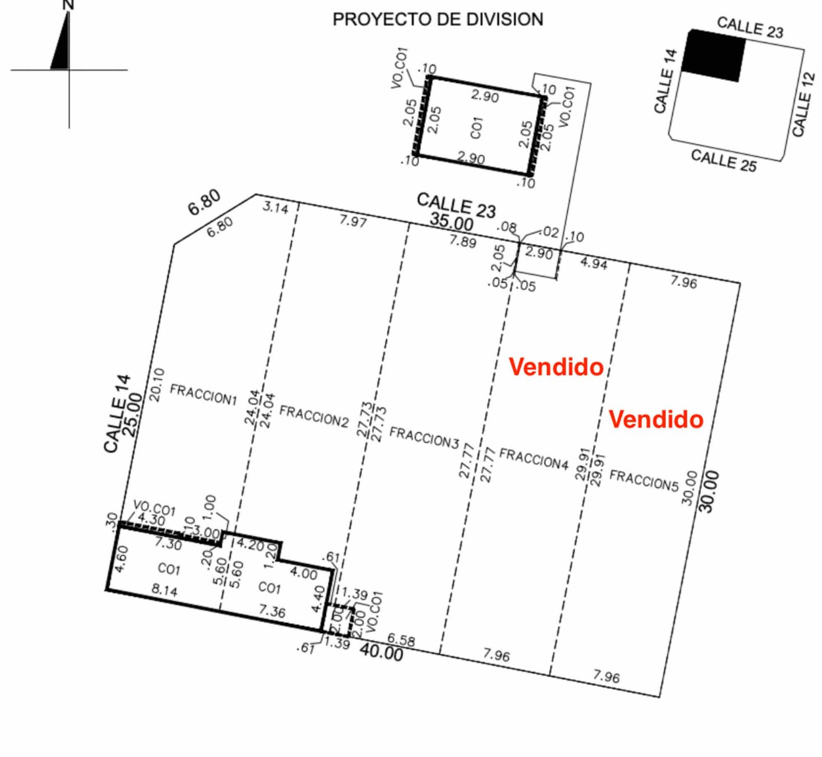 Los 5 lotes juntos tienen una superficie total de 1,187.78 m2 con un frente de casi 40 metros y un fondo de 30 metros.