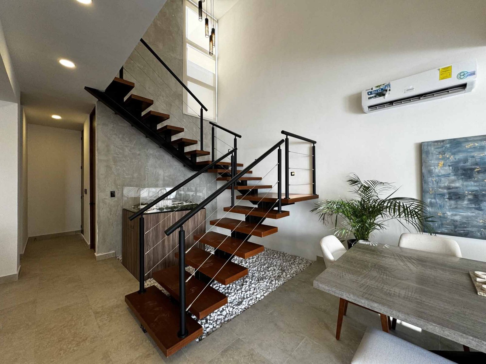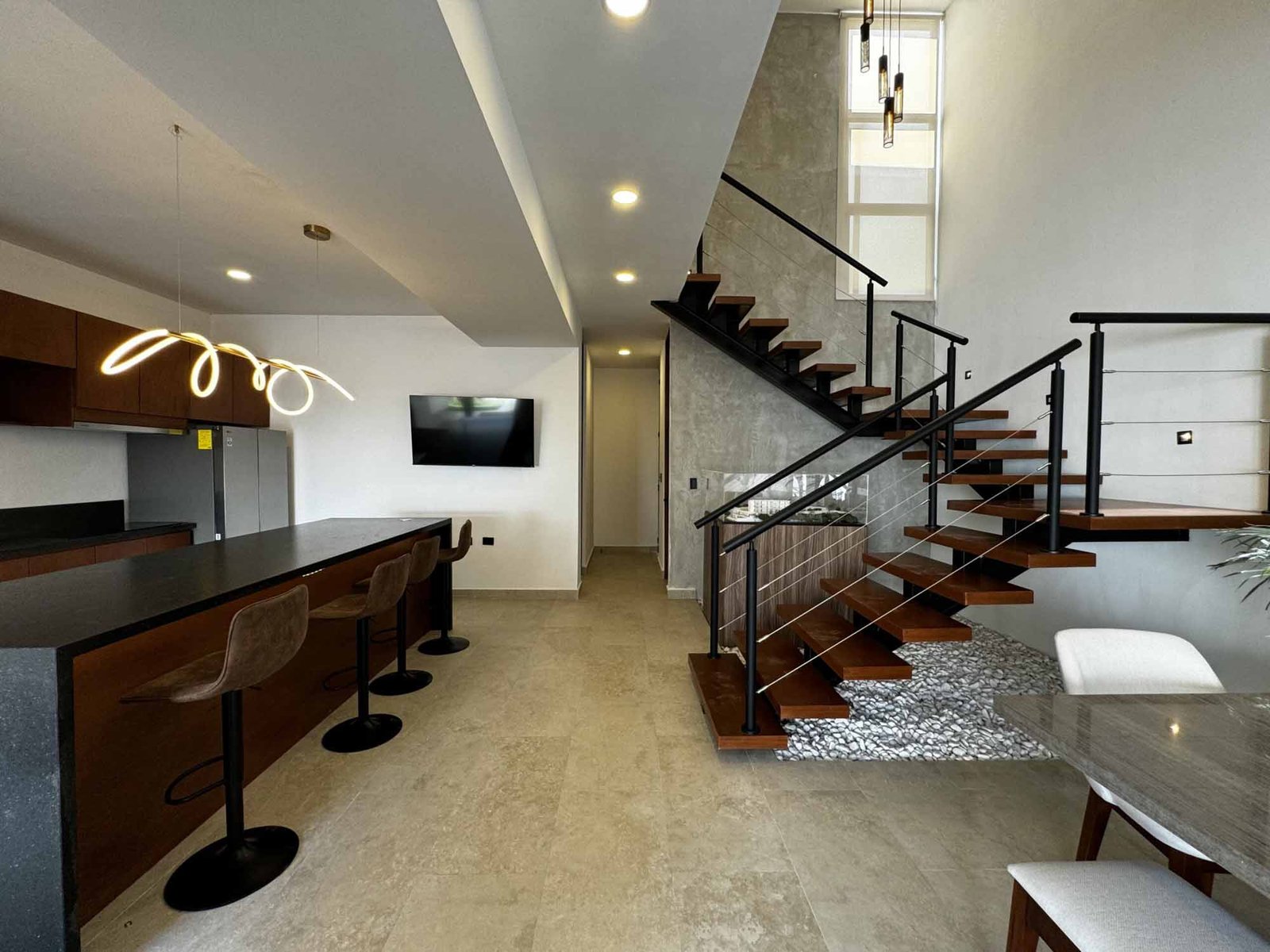El townhouse tipo combina elegancia y funcionalidad en un diseño contemporáneo, En la planta baja, encontrarás una amplia sala, comedor y cocina integrada, junto con un cuarto de servicio con baño completo , área de lavado y un baño de visitas. La cochera techada para dos autos y un área jardineada con diseño y alberca con fuente completan el espacio al aire libre.