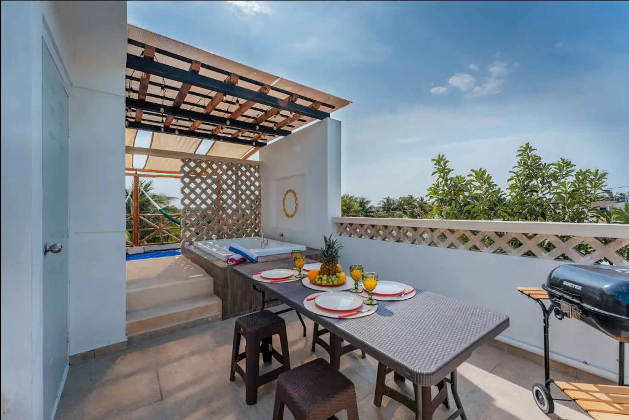 – Tina con pérgola y área abierta.