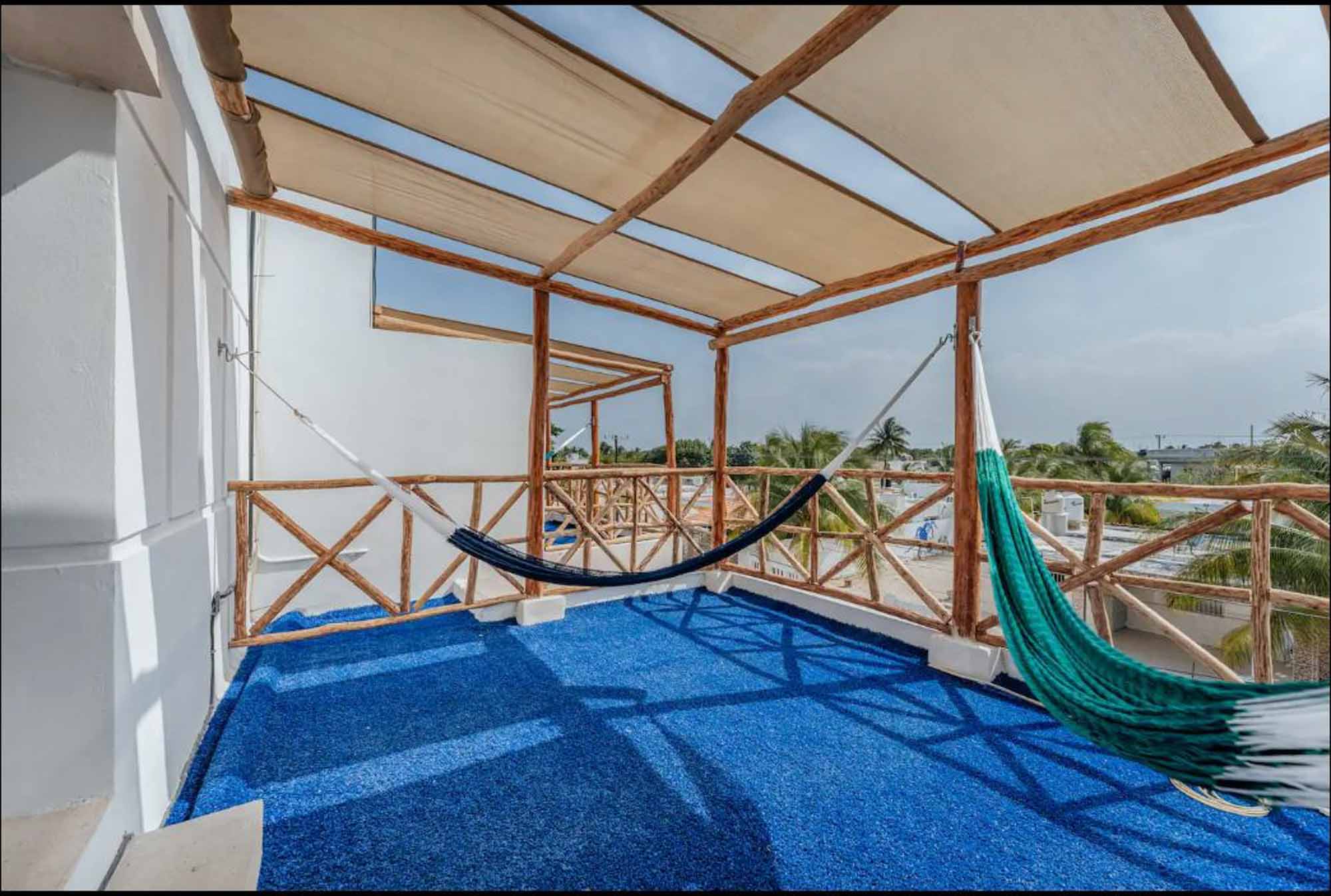 – Terraza espaciosa hacia la calle con pasto sintético.