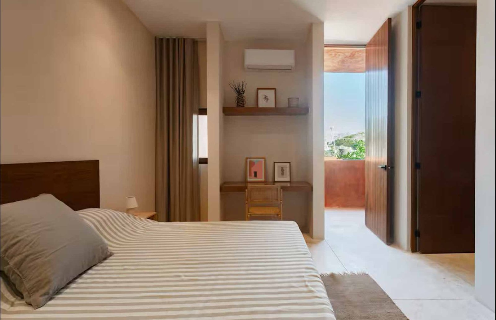La villa ha sido diseñada con una distribución funcional y elegante. Posee dos recámaras amplias (una en planta baja y otra en planta alta), cada una equipada con camas King size, baño privado, aire acondicionado, ventilador, escritorio para trabajar y acceso directo a la terraza. Además, cuenta con cortinas blackout para mayor privacidad y descanso, así como sábanas e insumos de higiene personal, incluyendo shampoo, acondicionador, jabón corporal y de manos, toallas, secadora de pelo y papel de baño.
